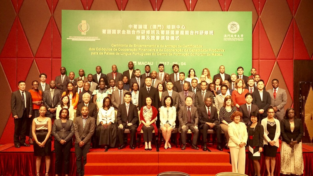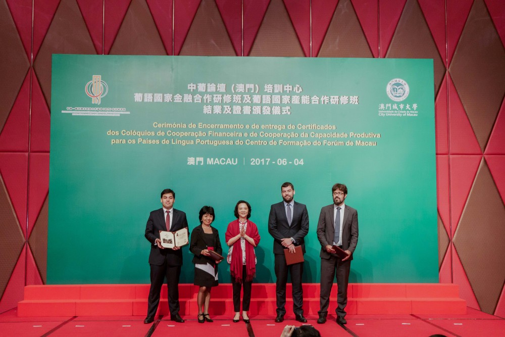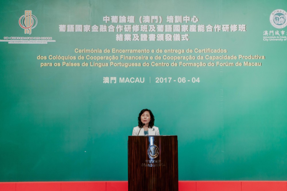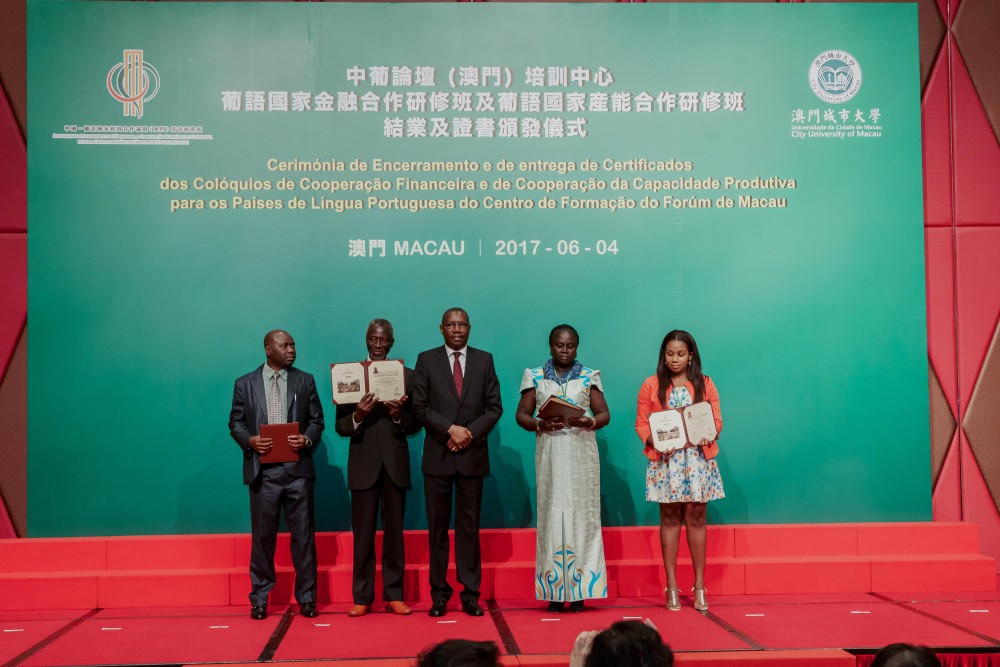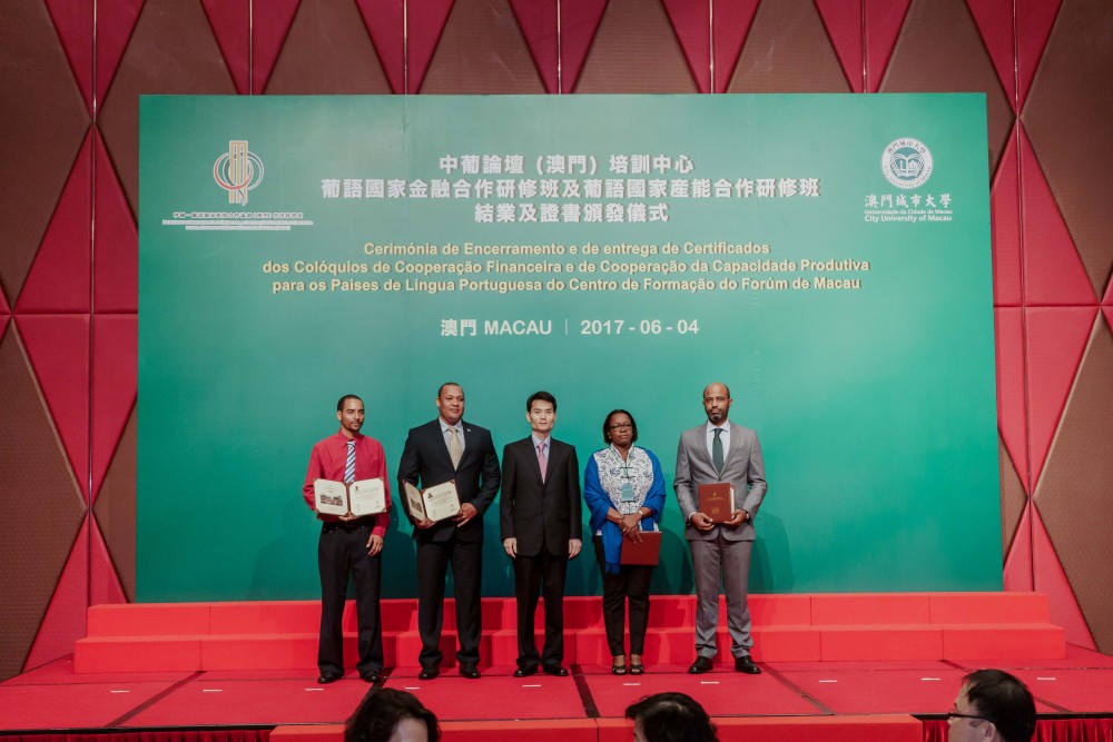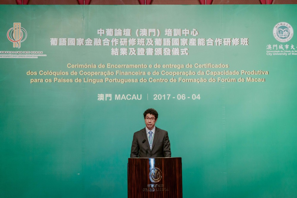 Co-organised by Training Centre of Forum Macau (Centro de Formação do Fórum de Macau) and City University of Macau (CityU), the Closing Ceremony of Workshop on Financial Cooperation for the Portuguese Speaking Countries (Portuguese: Colóquio sobre a Cooperação Financeira para os Países de Língua Portuguesa) and Workshop on Production Capacity Cooperation for the Portuguese Speaking Countries (Portuguese: Colóquio sobre a Cooperação da Capacidade Produtiva para os Países de Língua Portuguesa) was held at the Grand Ballroom at Hotel Grand Lisboa on 4 June 2017.