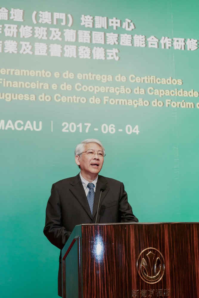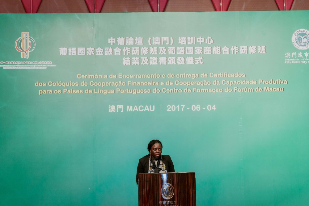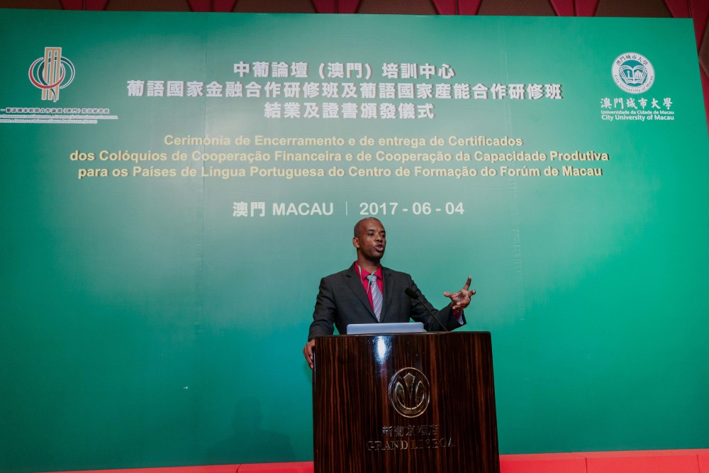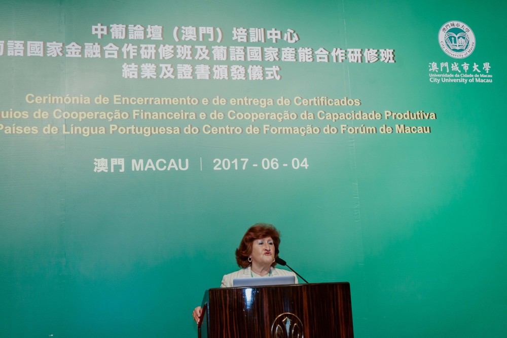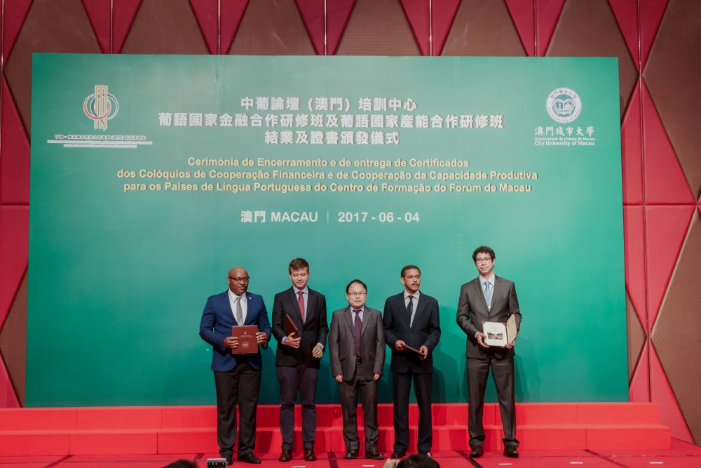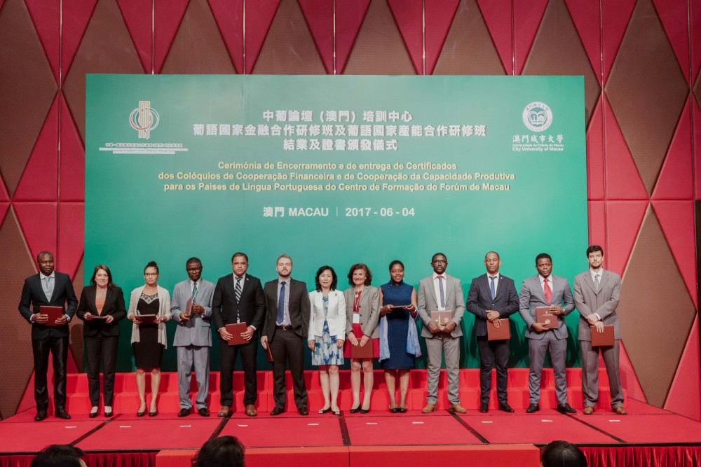 Co-organised by Training Centre of Forum Macau (Centro de Formação do Fórum de Macau) and City University of Macau (CityU), the Closing Ceremony of Workshop on Financial Cooperation for the Portuguese Speaking Countries (Portuguese: Colóquio sobre a Cooperação Financeira para os Países de Língua Portuguesa) and Workshop on Production Capacity Cooperation for the Portuguese Speaking Countries (Portuguese: Colóquio sobre a Cooperação da Capacidade Produtiva para os Países de Língua Portuguesa) was held at the Grand Ballroom at Hotel Grand Lisboa on 4 June 2017.