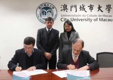 On 27th January 2016, the Open Institute of City University of Macau (OI-CityU) signed a Memorandum of Understanding (MOU) with the Macau Institute of Financial Services (IFS). The MOU was signed by Dr Gavin Chau, Executive Associate Dean of OI-CityU; and Mr António José Félix Pontes, Chairman of the Executive Board of IFS. The signing of the MOU was witnessed by Dr Rui Manuel de Sousa Rocha, Director of Department of Portuguese Language and Culture of Portuguese-speaking Countries of CityU, and Ms Evelyn Kun, General Secretary to the Executive Board of IFS.