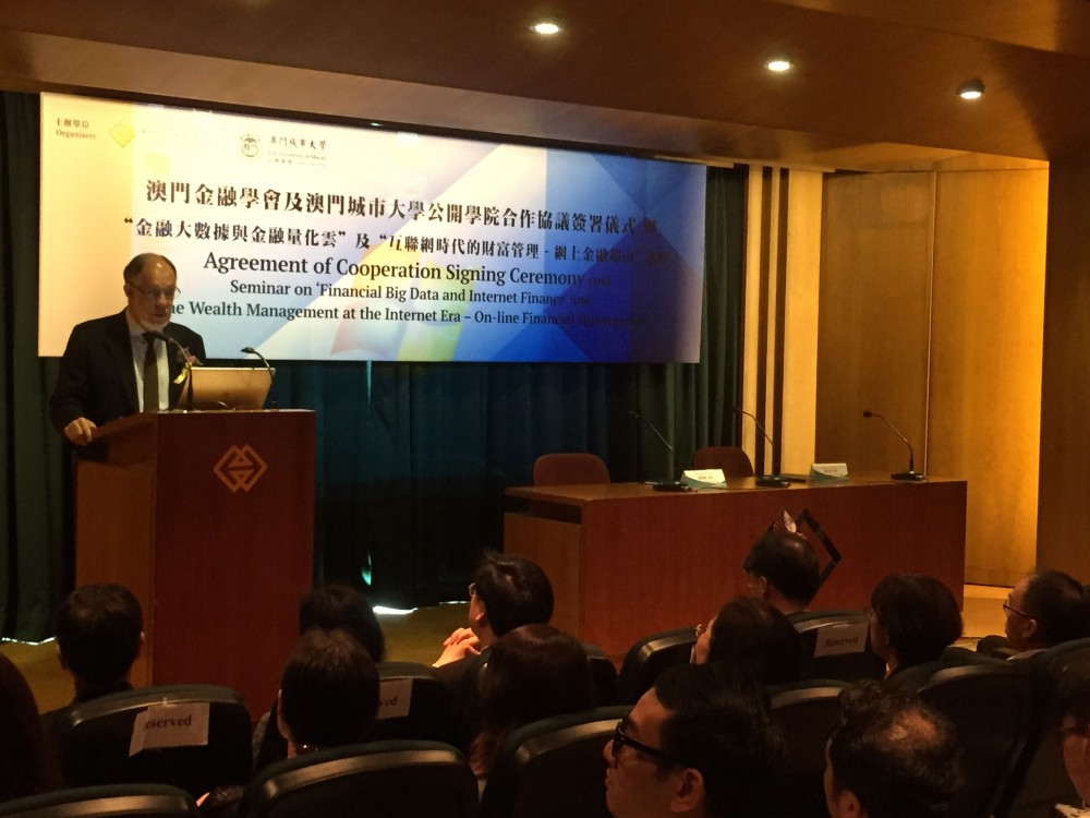 Following the signing of the Agreement, two seminars titled ‘Financial Big Data and Internet Finance’ and ‘The Wealth Management at the Internet Era – On-line Financial Supermarket’ were delivered, respectively, by Dr James Zhibin Lei, Program Director of Cloud Computing, Security and Data Science at Hong Kong Applied Science and Technology Research Institute, and Professor Jerome Yen, Director of Internet Finance at Hong Kong Applied Science and Technology Research Institute.