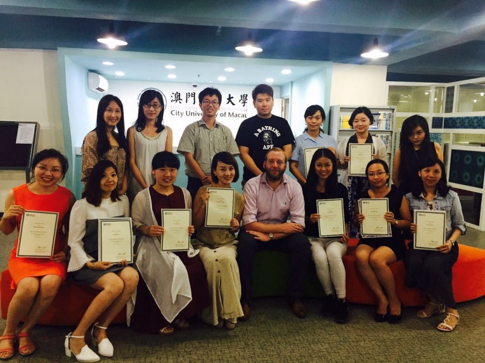 On 25 and 26 July, OI-CityU and British Council jointly organised the IELTS Trainer’s Training Workshop on the Royal Centre Campus of City University of Macau. Fifteen English teachers from CityU, Beijing Normal University (Zhuhai), and Dulwich International High School, Zhuhai attended the training workshop.